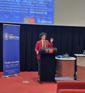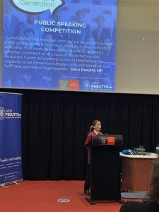 The students representing our school, were Alyssa L (year 7) and Pasquale L (year 11). The competition was divided into two divisions: the junior division (years 7 to 9), where Alyssa spoke about female stereotypes online, and the senior division (years 10 to 12), where Pasquale discussed expanding access to justice by increasing funding for Victoria Legal Aid.
