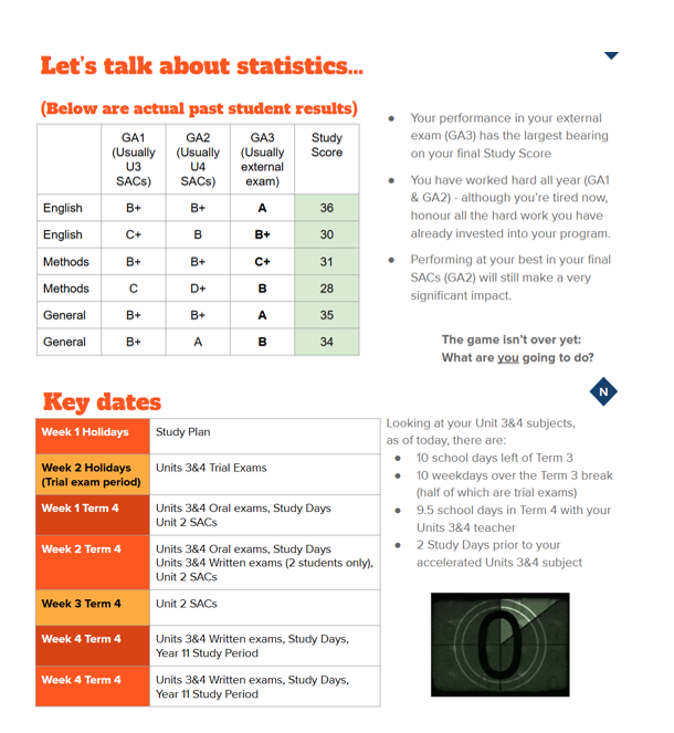 This week in their study period, Year 11 & Year 12 students were presented with a range of resources to support them in planning for their revision periods in the final part of Term 3, as well their holidays and early Term 4 if they are accelerating in a Unit 3 & 4 subject.