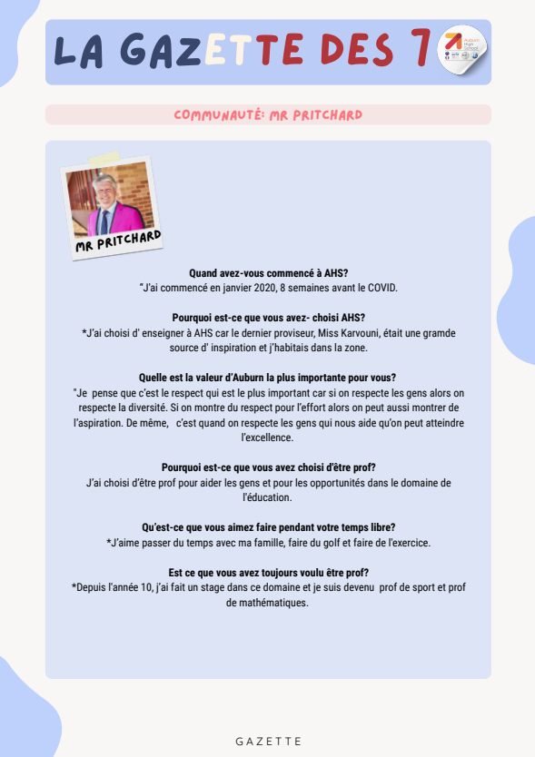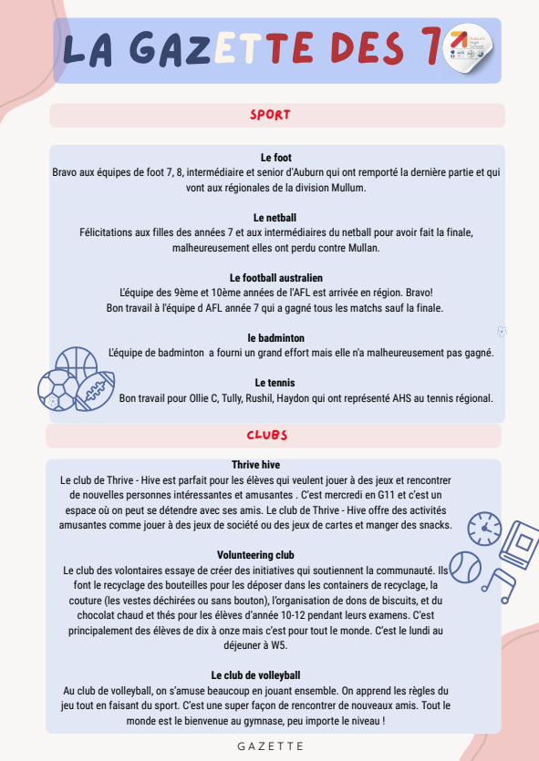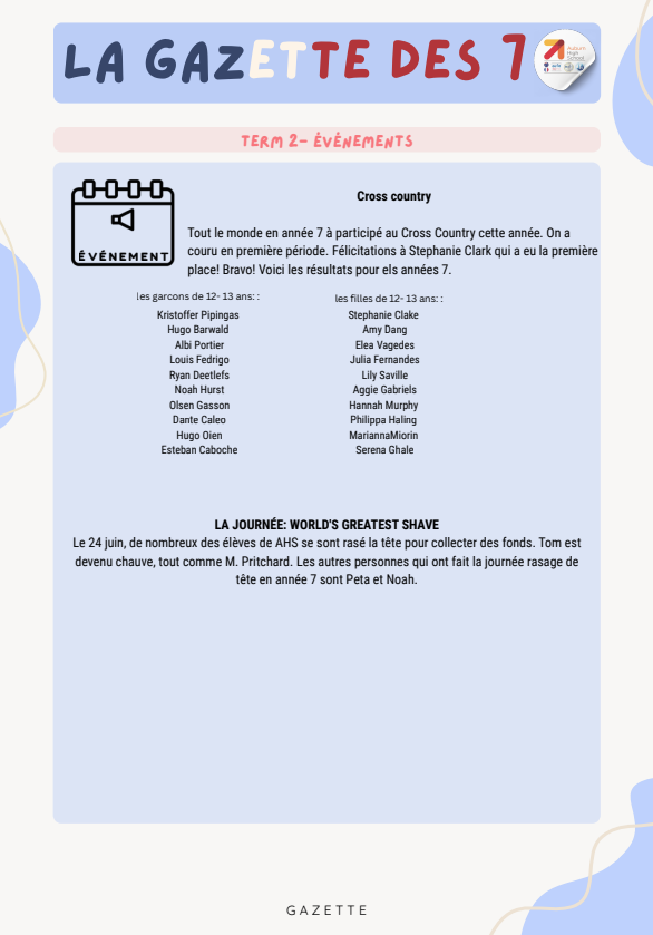 Félicitations to all our student journalists for another outstanding edition of La Gazette des 7!